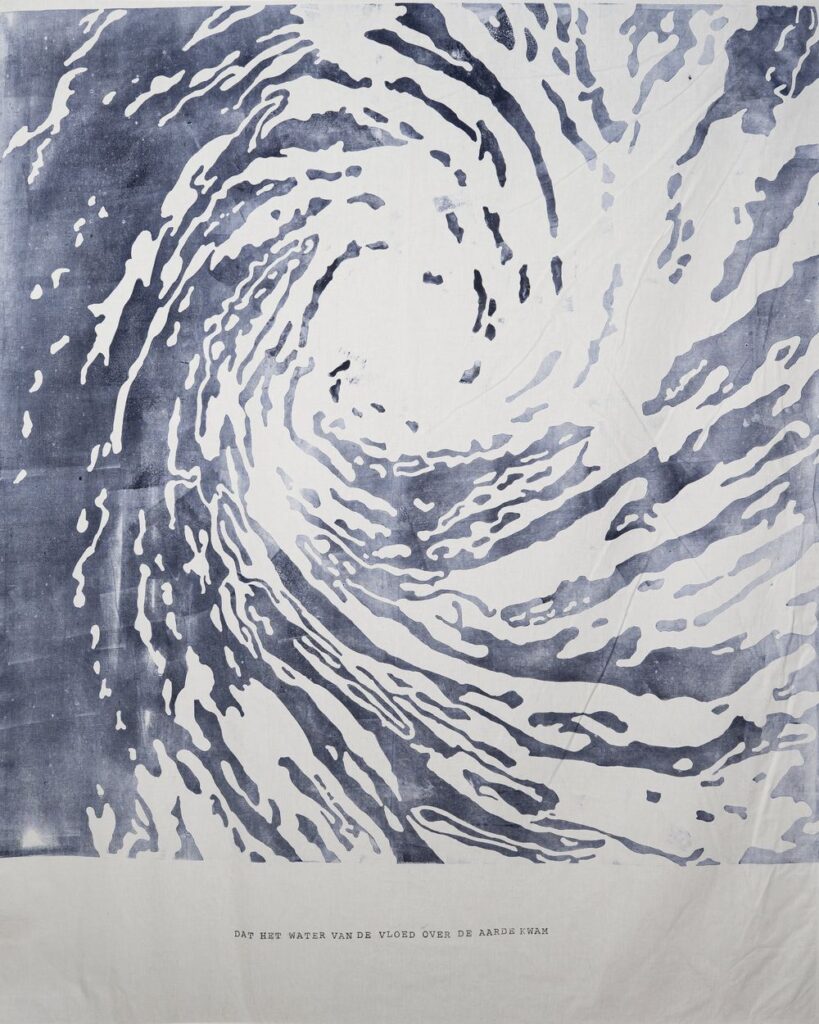 Let op: De doeken zijn al op reis geweest langs verschillende locaties. Daarom kunnen er sporen van gebruik of weersinvloeden op het wandkleed te zien zijn. Dit is onderdeel van dit kunstconcept. Laat het stromen!