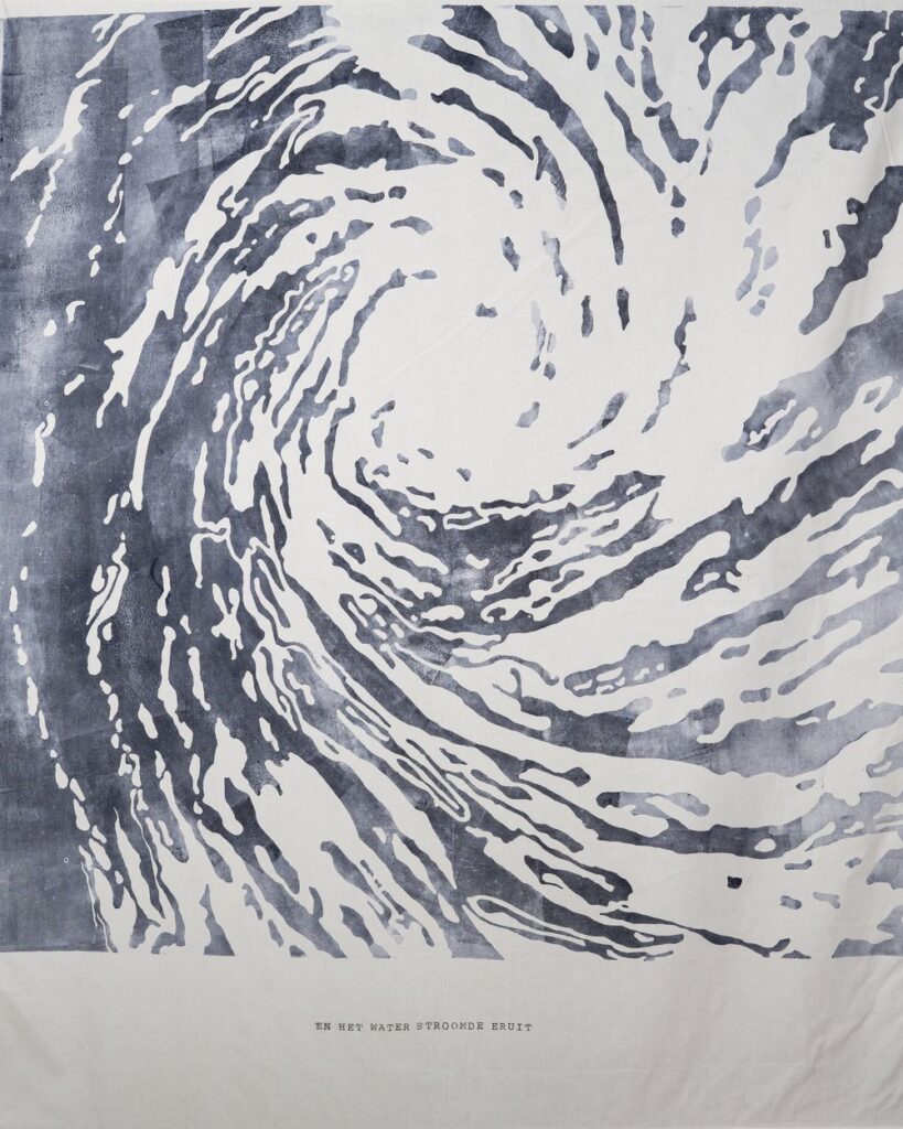 Let op: De doeken zijn al op reis geweest langs verschillende locaties. Daarom kunnen er sporen van gebruik of weersinvloeden op het wandkleed te zien zijn. Dit is onderdeel van dit kunstconcept. Laat het stromen!