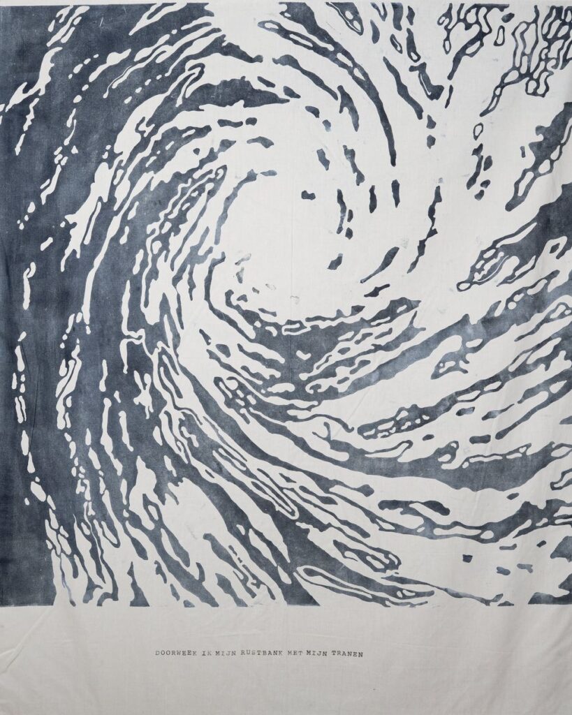 Let op: De doeken zijn al op reis geweest langs verschillende locaties. Daarom kunnen er sporen van gebruik of weersinvloeden op het wandkleed te zien zijn. Dit is onderdeel van dit kunstconcept. Laat het stromen!