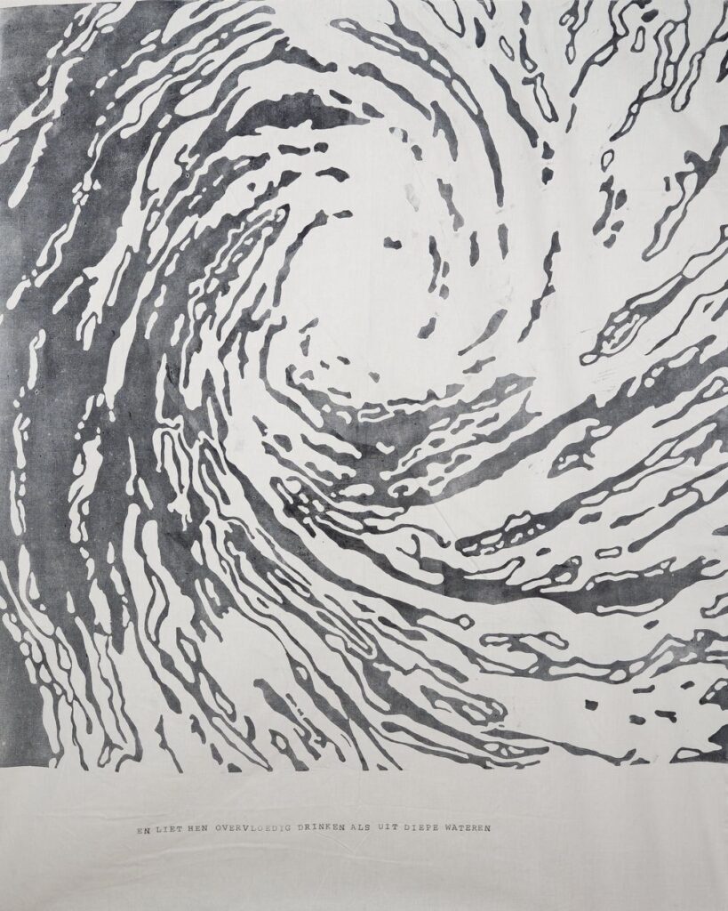 Let op: De doeken zijn al op reis geweest langs verschillende locaties. Daarom kunnen er sporen van gebruik of weersinvloeden op het wandkleed te zien zijn. Dit is onderdeel van dit kunstconcept. Laat het stromen!