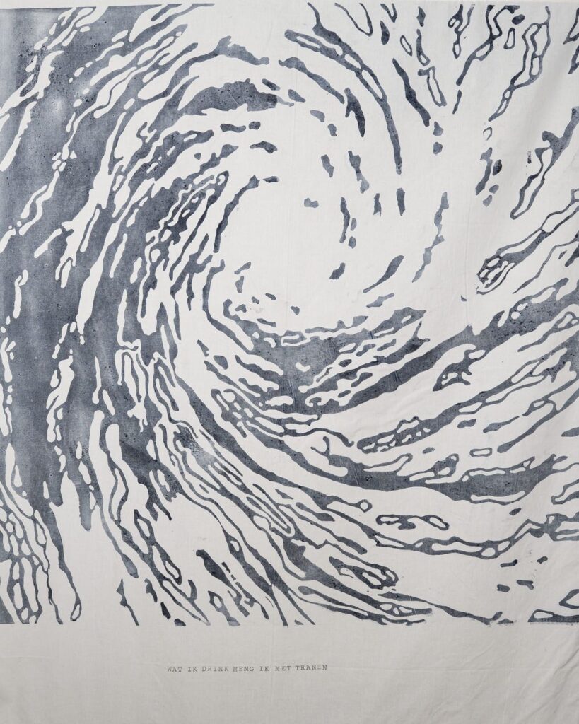 Let op: De doeken zijn al op reis geweest langs verschillende locaties. Daarom kunnen er sporen van gebruik of weersinvloeden op het wandkleed te zien zijn. Dit is onderdeel van dit kunstconcept. Laat het stromen!