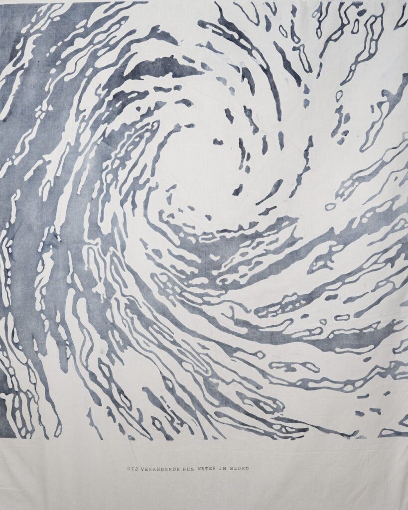Let op: De doeken zijn al op reis geweest langs verschillende locaties. Daarom kunnen er sporen van gebruik of weersinvloeden op het wandkleed te zien zijn. Dit is onderdeel van dit kunstconcept. Laat het stromen!