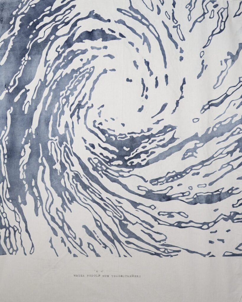 Let op: De doeken zijn al op reis geweest langs verschillende locaties. Daarom kunnen er sporen van gebruik of weersinvloeden op het wandkleed te zien zijn. Dit is onderdeel van dit kunstconcept. Laat het stromen!