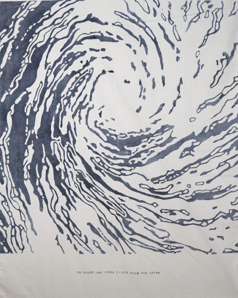 Let op: De doeken zijn al op reis geweest langs verschillende locaties. Daarom kunnen er sporen van gebruik of weersinvloeden op het wandkleed te zien zijn. Dit is onderdeel van dit kunstconcept. Laat het stromen!