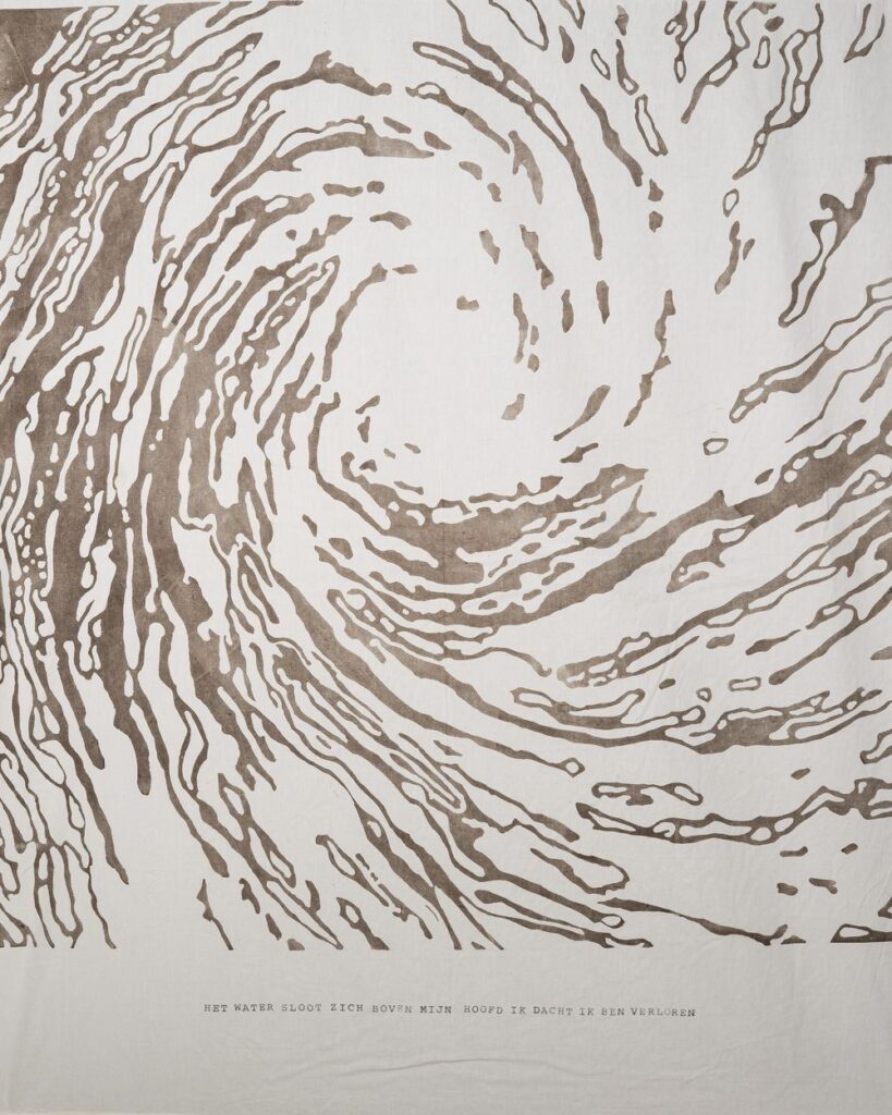 Let op: De doeken zijn al op reis geweest langs verschillende locaties. Daarom kunnen er sporen van gebruik of weersinvloeden op het wandkleed te zien zijn. Dit is onderdeel van dit kunstconcept. Laat het stromen!