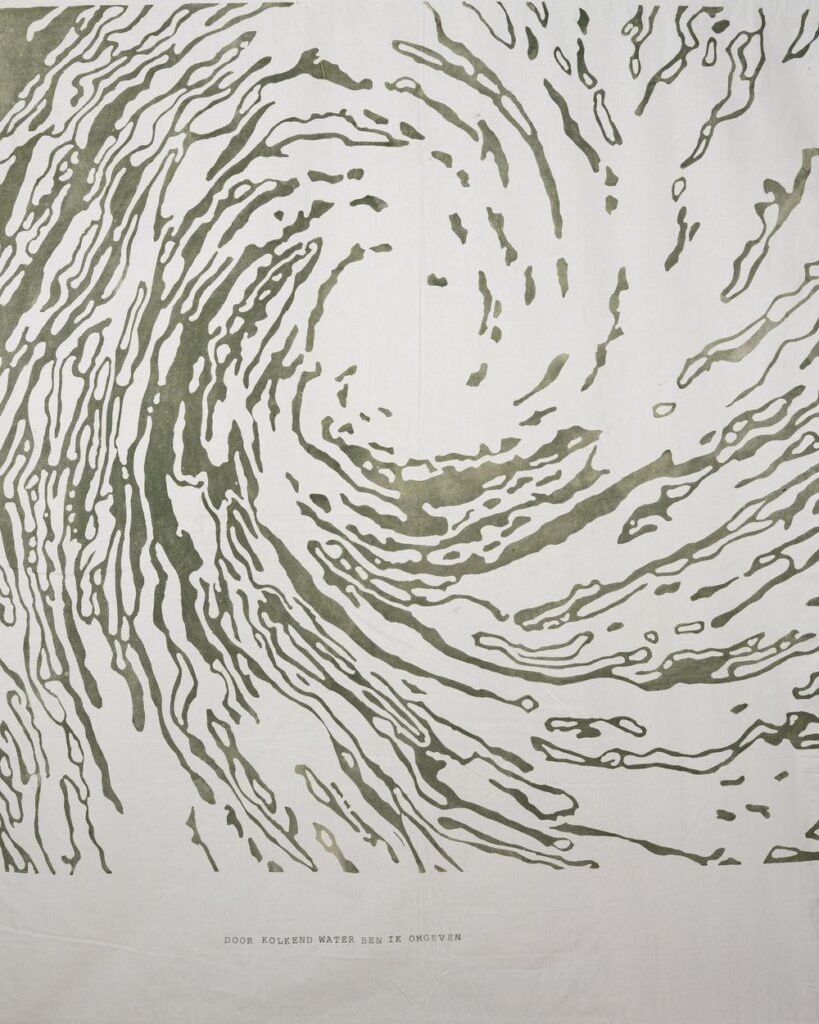 Let op: De doeken zijn al op reis geweest langs verschillende locaties. Daarom kunnen er sporen van gebruik of weersinvloeden op het wandkleed te zien zijn. Dit is onderdeel van dit kunstconcept. Laat het stromen!