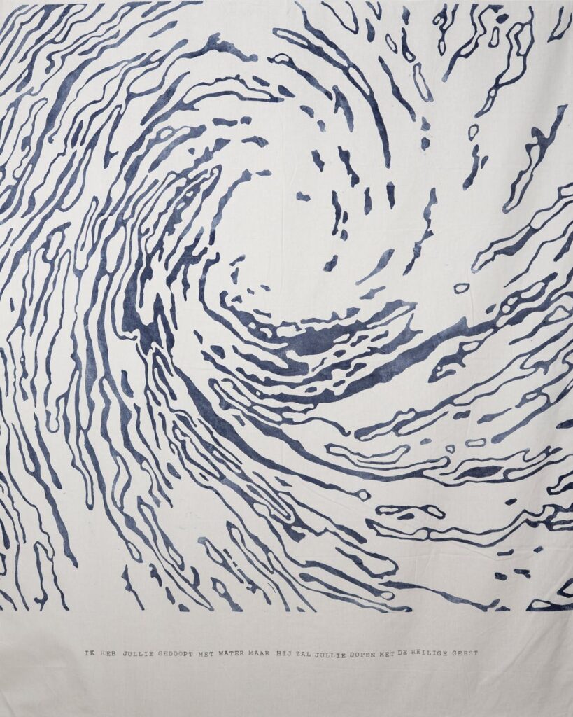 Let op: De doeken zijn al op reis geweest langs verschillende locaties. Daarom kunnen er sporen van gebruik of weersinvloeden op het wandkleed te zien zijn. Dit is onderdeel van dit kunstconcept. Laat het stromen!