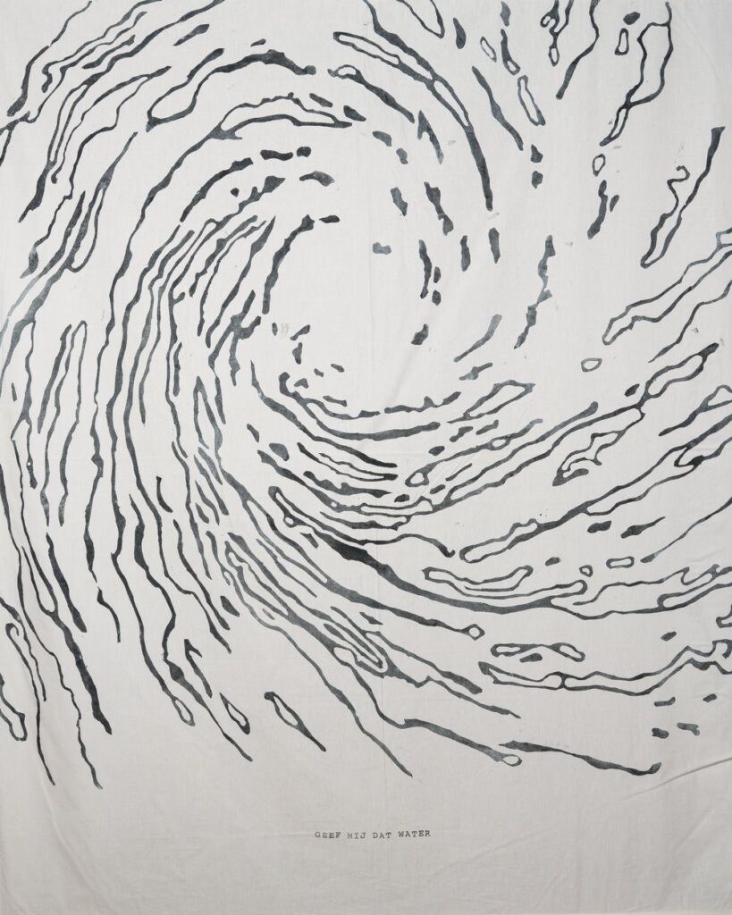 Let op: De doeken zijn al op reis geweest langs verschillende locaties. Daarom kunnen er sporen van gebruik of weersinvloeden op het wandkleed te zien zijn. Dit is onderdeel van dit kunstconcept. Laat het stromen!