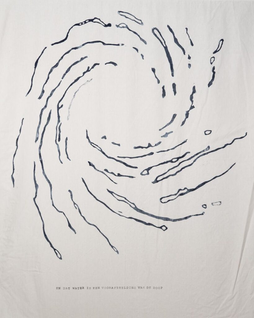 ‘en dat water is een voorafbeelding van het water van de doop, waardoor u nu wordt gered. De doop wast niet het vuil van uw lichaam, het is een vraag aan God om een zuiver geweten. Hierom kunt u vragen dankzij de opstanding van Jezus Christus,’