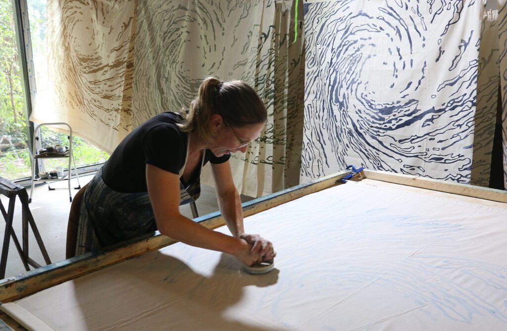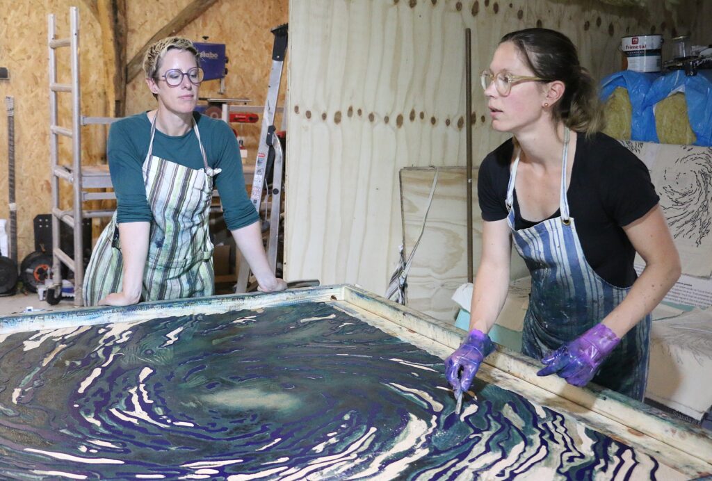 De kolk roept ook associaties op met jaarringen van een boom, een tornado, een explosie of een roos. Inspiratie vond de kunstenares bij ‘Water voor je dorst’, het onderwerp dat tijdens het Graceland Festival dit jaar centraal staat. ,,Mijn project heet Dorstprent, wat gaat over dorst, als metafoor voor verlangen. Naar zuiver water, want dat is natuurlijk superessentieel voor alle leven op aarde. Het is heel actueel, omdat het vandaag de dag onder druk staat, met wat er recent gepubliceerd is over PFAS, onder meer in ons drinkwater. En je hebt wereldwijd tekort of teveel aan water, met grote droogte of overstromingen tot gevolg. Het veranderende klimaat heeft effect op het water.”
